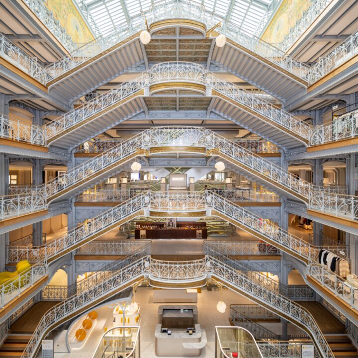 店舗内に広がるミラーが立ち並ぶ箱型の空間に入ると、プロジェクションマッピング演出で空間全体に演出が広がり、コレクションのインスピレーションとなった世界観に包まれているような今回のアート体験。店舗内の壁面にも、星々が降り注いでいるかのようなプロジェクションマッピング演出を施され、通常は見ることのできない映像演出と融合した非日常な空間のなかでジュエリーを楽しめるので、ぜひチェックしてみて。