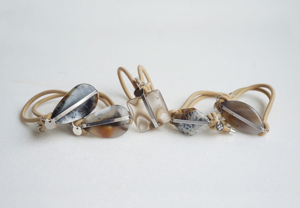 また、人気の天然石のヘアタイは、今回ルースオーダーも予定。柄や色味で雰囲気もガラリと変わるので、自分好みの一点を見つけたい。