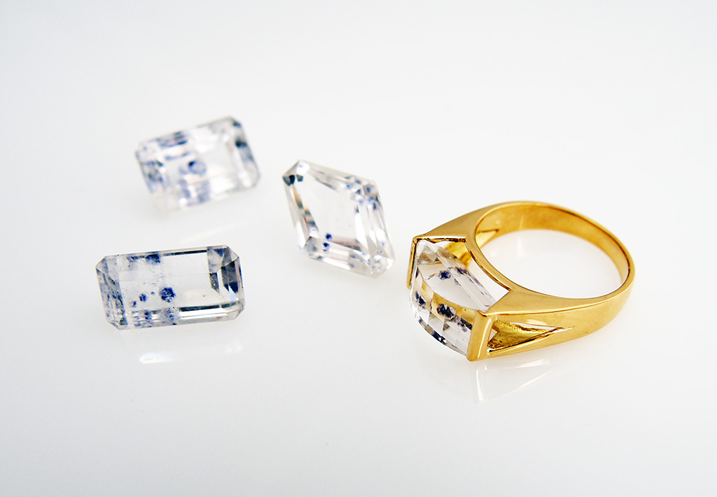 ブラジル・ミナスジェライス産、アンカンガイト イン クォーツを使用した新作リングとネックレス。シルバーの綿毛のように軽やかに石の中を舞うアンカンガイトが、多彩な表情を織りなすシリーズ。石の下にあしらった一粒ダイヤが、石を通して透けて見える贅沢なデザイン。