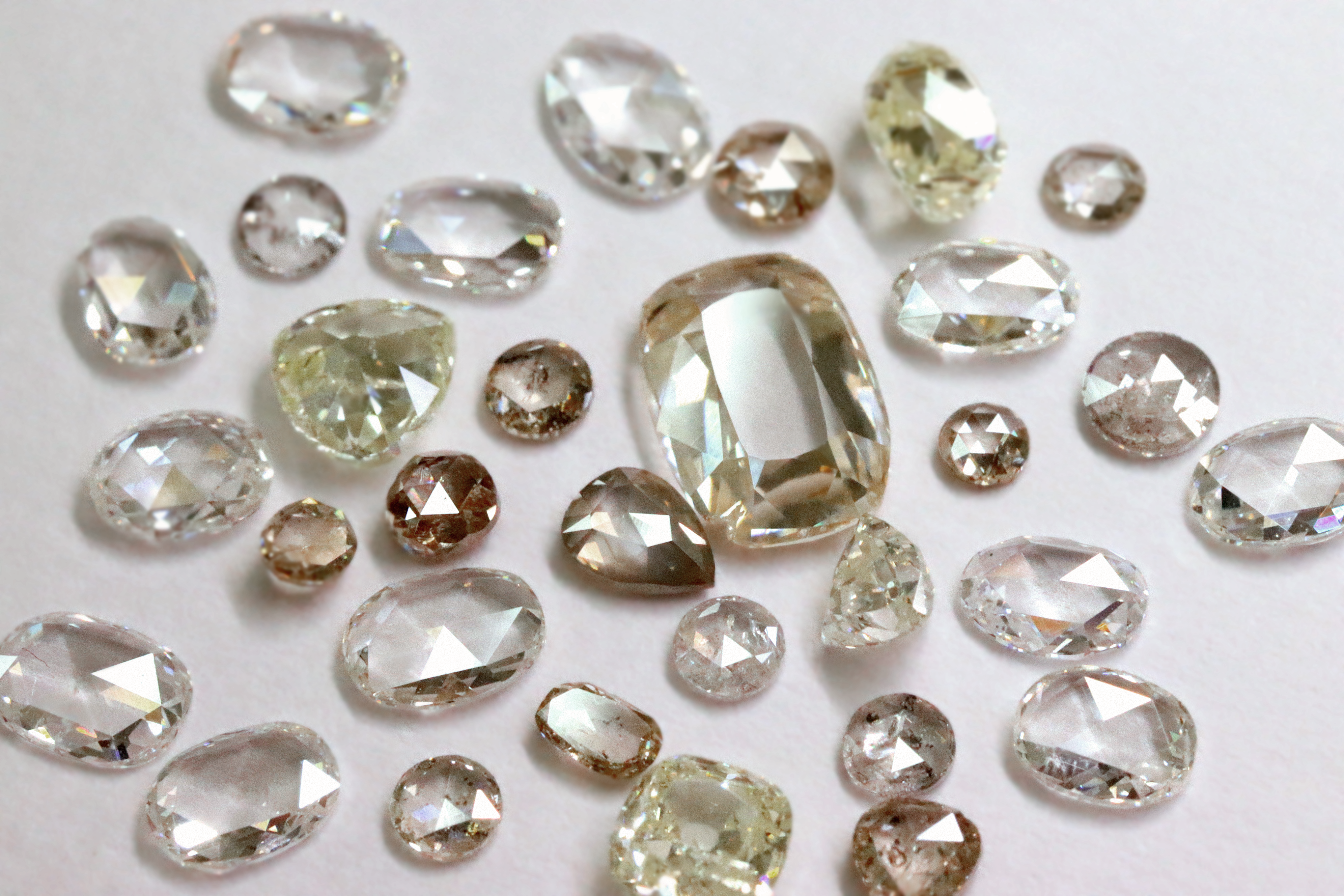 一般的にダイヤモンドといえば無色透明で煌めく丸いカットを思い浮かべますが、ラスティックダイヤはその枠には収まりません。多様なカラーやシェイプ、内包物を持つダイヤモンドは、欧米では「Rustic Diamond(=素朴なダイヤモンド)」と呼ばれ、ありのままの魅力を楽しむダイヤモンドとして愛されています。