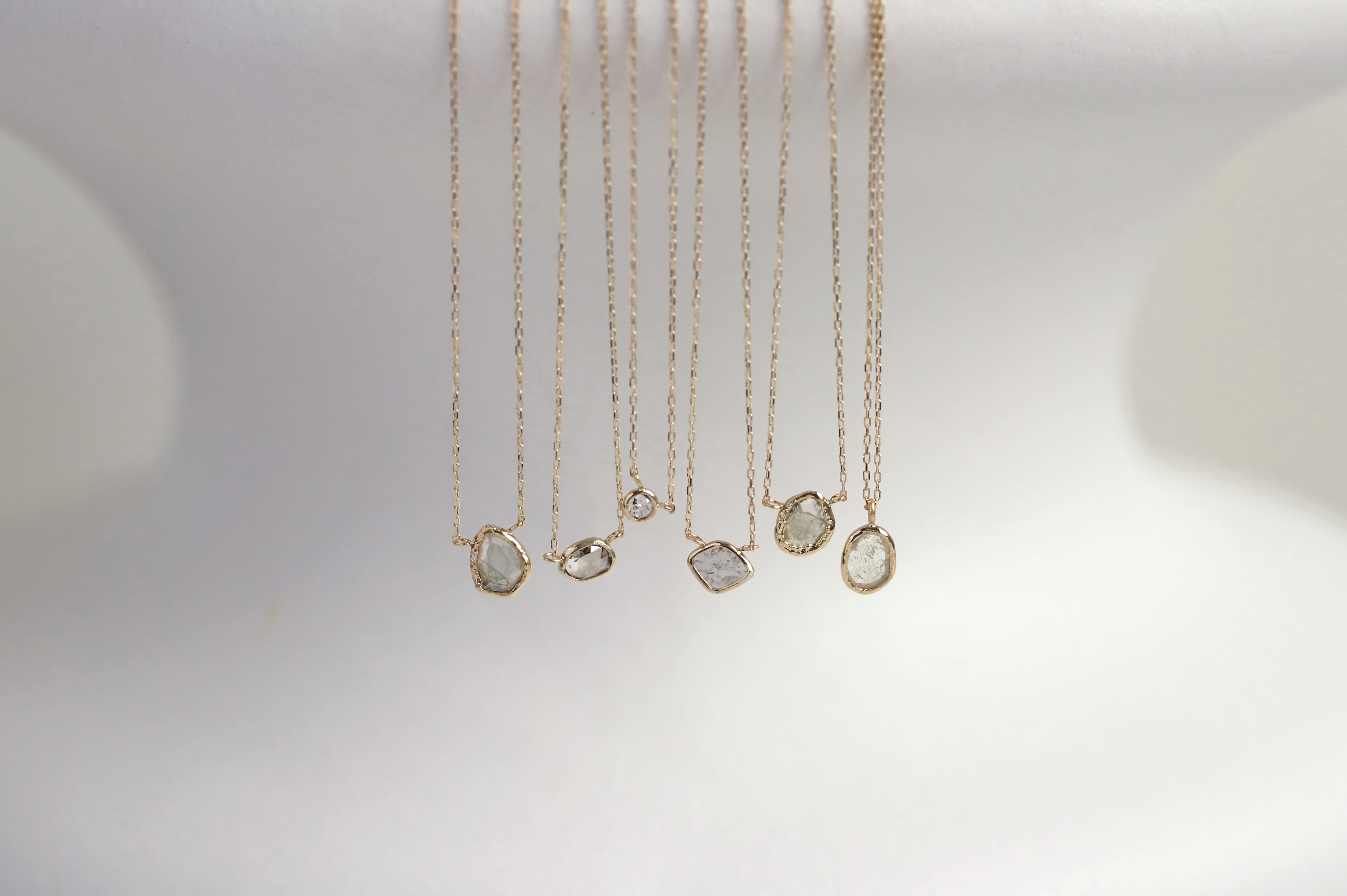 「整いすぎない、不均一でいびつな表情」を大切に、自然が刻んだ痕跡やゆらぎを「個性」として映し出す新しいジュエリーブランドとして、ひとつとして同じものがない石の姿を、そのままの美しさで受け止め、一点物のジュエリーとして仕立てます。