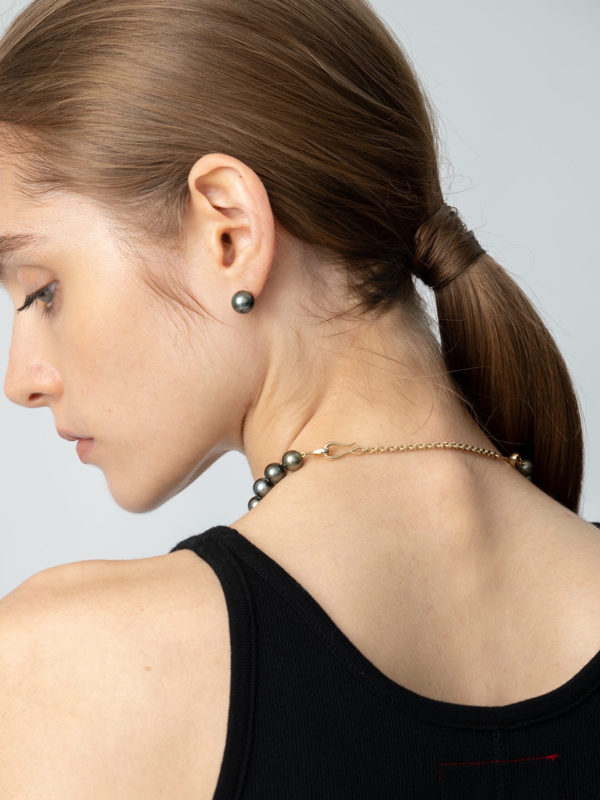 今回の別注コレクションでは、神秘的な輝きを放つタヒチアンパールを主役に展開。厚みのある真珠層から生まれるピーコックカラーの艶やかさは、唯一無二の存在感を放ちます。