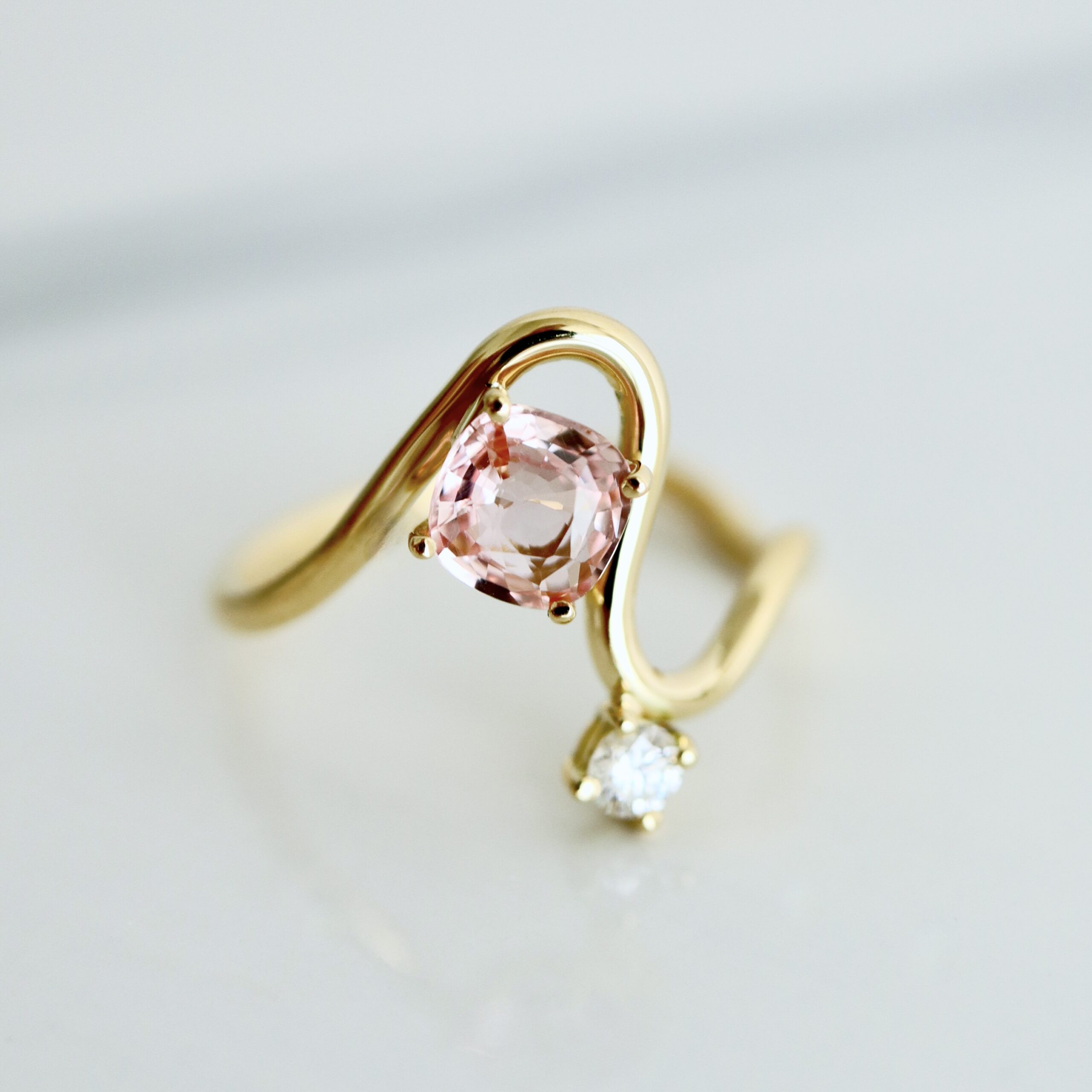 リング K18YG/パパラチアサファイア/ダイヤモンド