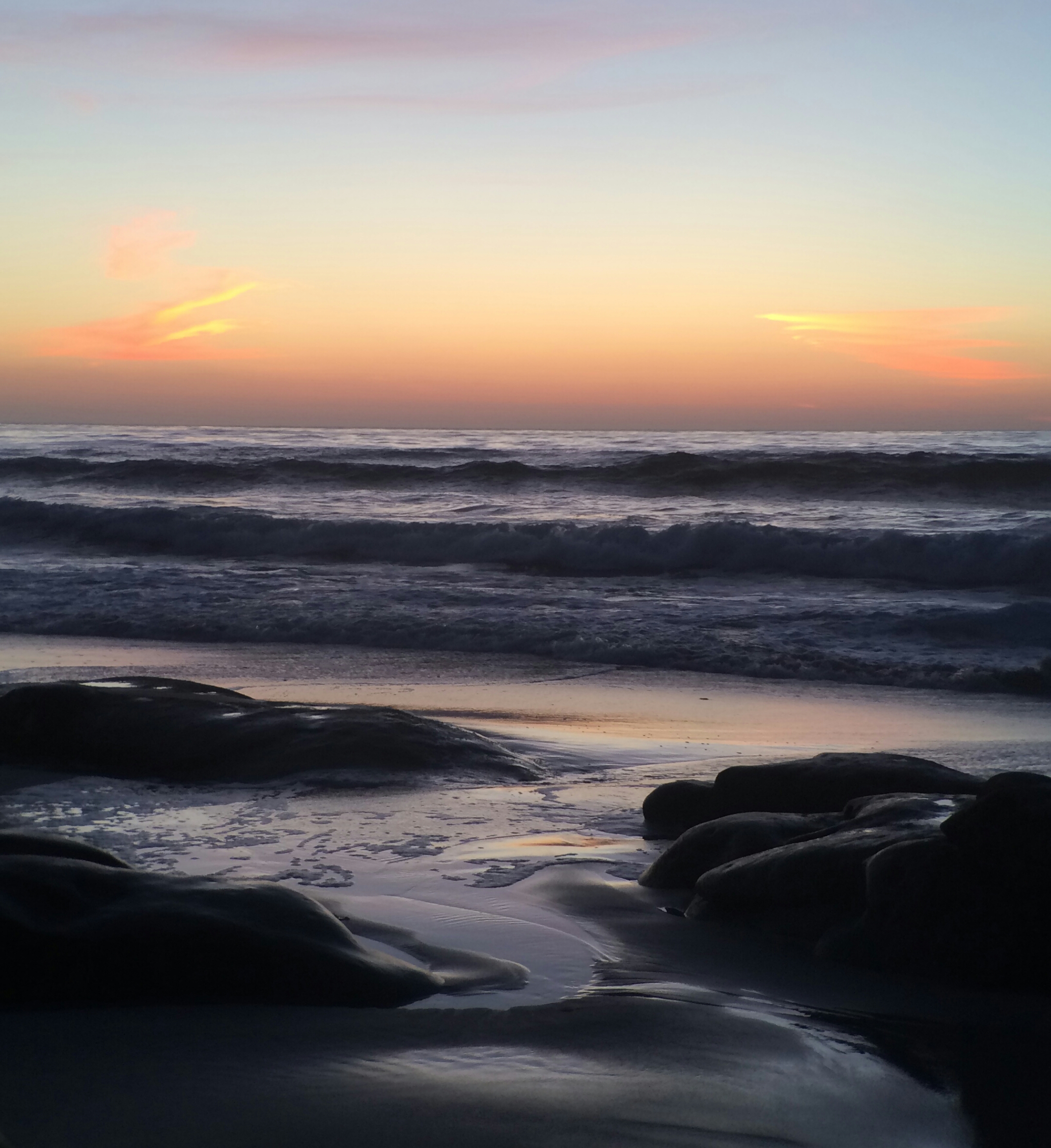 カリフォルニアの豊かな自然のなかで感覚を解き放ち、ゆったりと穏やかに流れる時間を過ごすことは、心の大きな癒しとなりました。夕日が沈むころ、ビーチを散歩するのが日課。変わりゆく空の色を眺めながら、足元の砂の感触に意識を集中し、水平線の彼方へ思いを馳せる時間は、一日の終わりをやさしく包み込んでくれます。