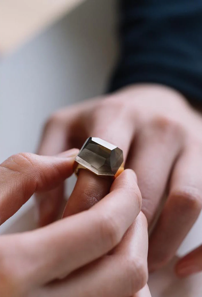 その中でも「Rock Ring」は、bororo の精神と日本の高度な伝統技術が結実した象徴的な名品。山梨・甲府の伝統工芸士が手がける「同摺り(どうずり)」という特殊技法によって作られており、本来は硬度の異なる素材同士をぴたりと擦り合わせ、一体化させる極めて高度な手仕事が必要とされます。
