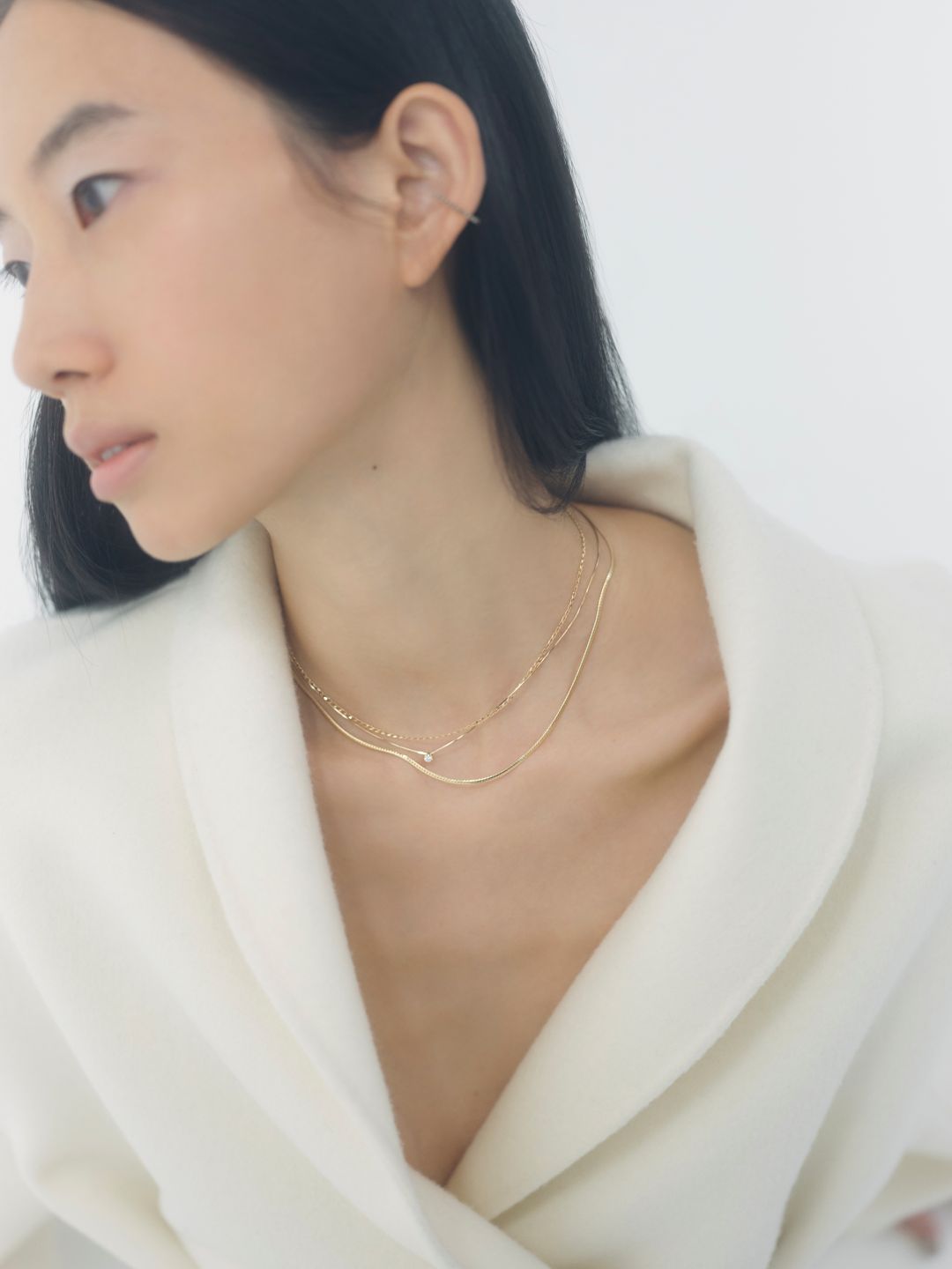 指先からジュエリーへと連なる繊細な表情は、装い全体にやわらかな光を添え、Lilasが大切にする“日常に寄り添う上質さ”をあらためて感じさせてくれます。