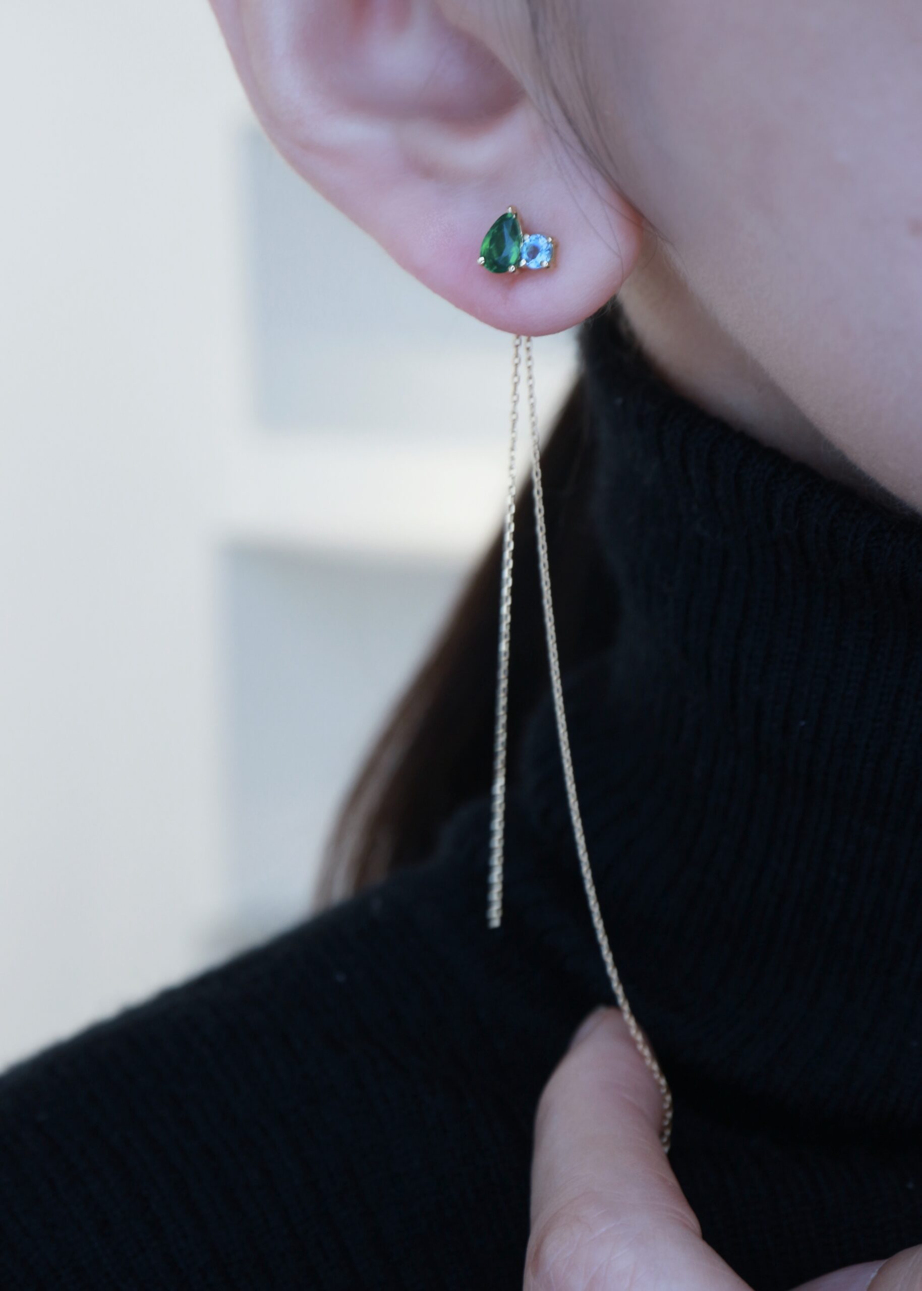 一部のスタッドピアスには、チェーン付きキャッチを合わせることで、揺れ感のあるエレガントなピアスとしても着用が可能。