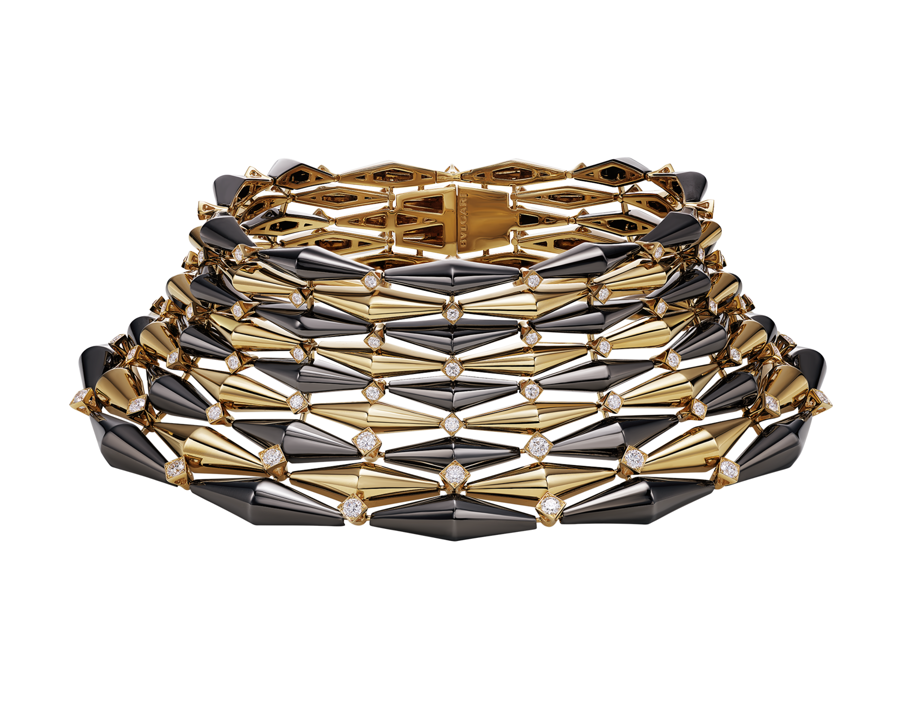 チョーカーからクラシックなネックレス、さらにはポンチョスタイルまで、多彩なフォルムで展開されるハイジュエリーは、モダンでありながら時代を超えた存在感を備えています。
