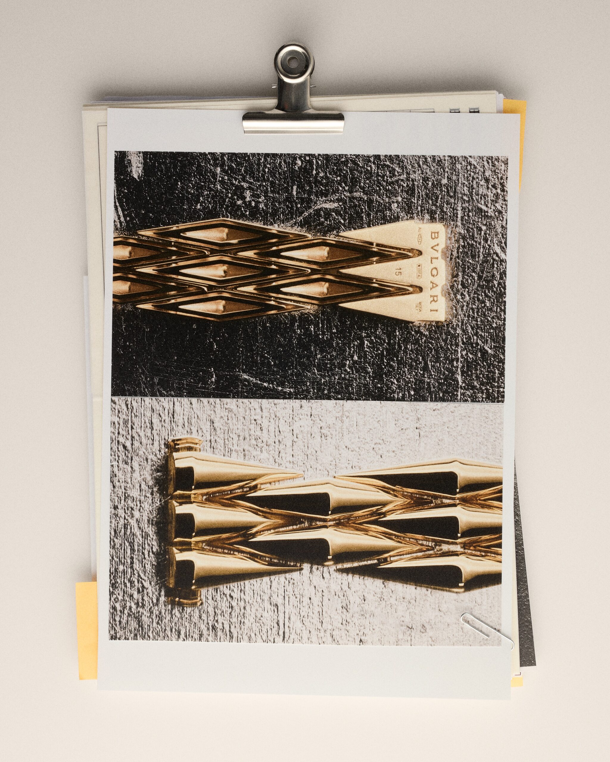 当時、第二次世界大戦下という制約の多い時代に生まれたこの作品は、素材や社会的制限を超えて創造性を追求した、ブルガリの精神を体現する存在でした。波打つようなリズミカルなモチーフは、イタリア合理主義の美学を背景に、ピンクゴールドとイエローゴールドの融合によって再構築されています。