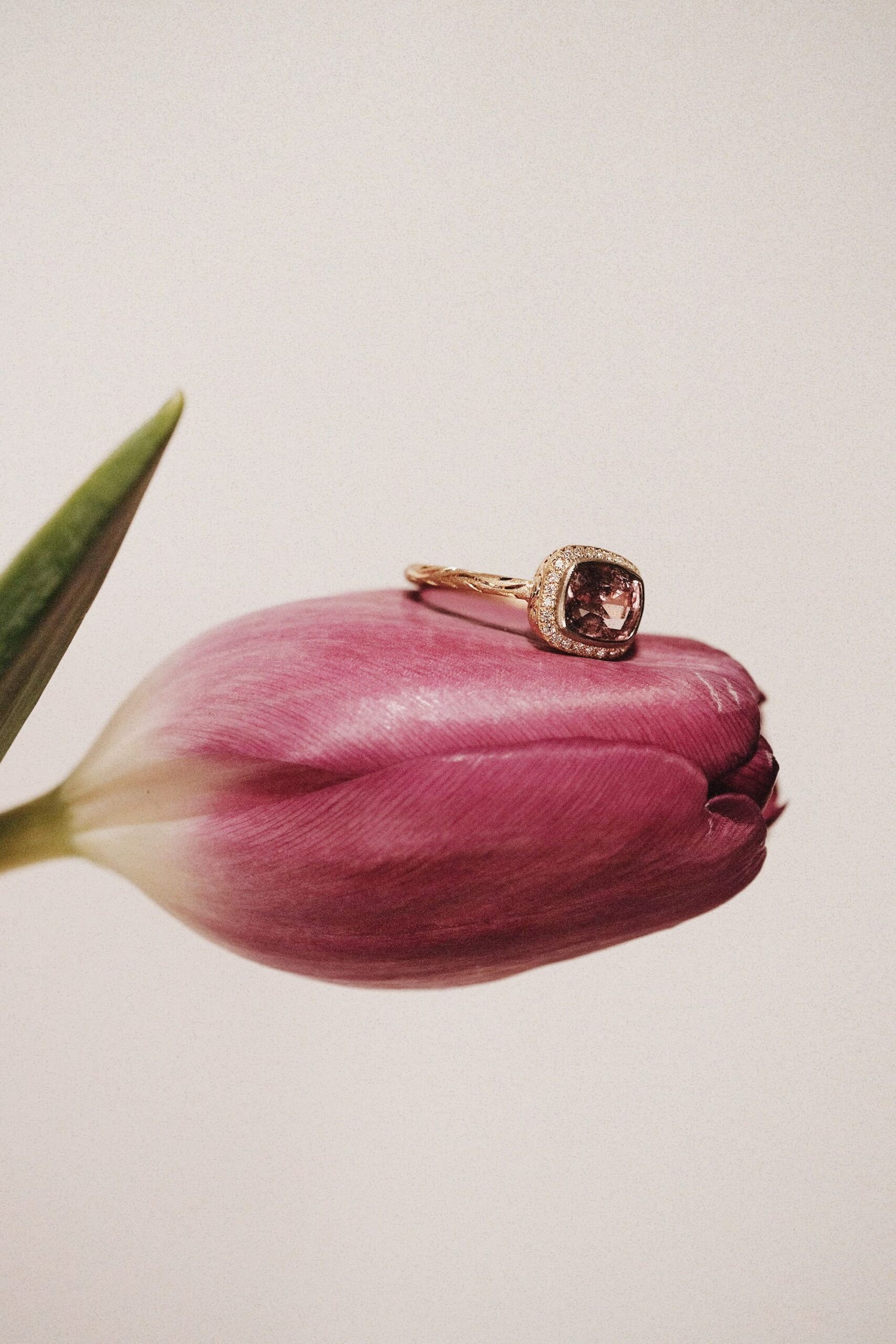 花開く瞬間を閉じ込めたかのようなデザインは、指先に季節の息吹を添えてくれるはずです。