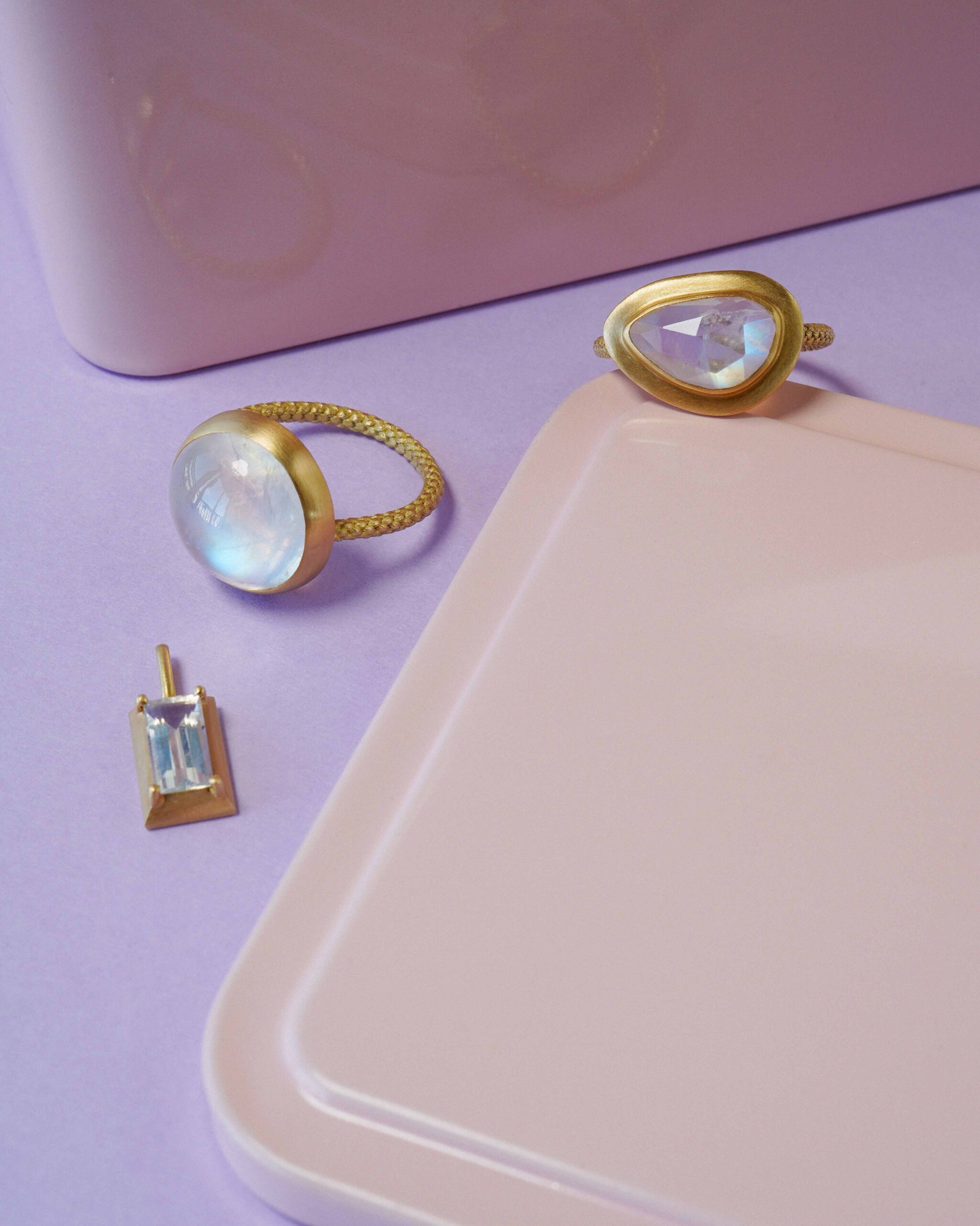 デザイナーマロッタ忍氏が選び抜いたカラーストーンは、それぞれが繊細な個性を持ち、身につける方の魅力をさりげなく引き立ててくれるものばかり。今回は、やさしいホワイトの光を映し出すオパールやムーンストーンに、クランベリーのようにほんのり赤みを帯びたルベライトのピンクが勢揃いします。
