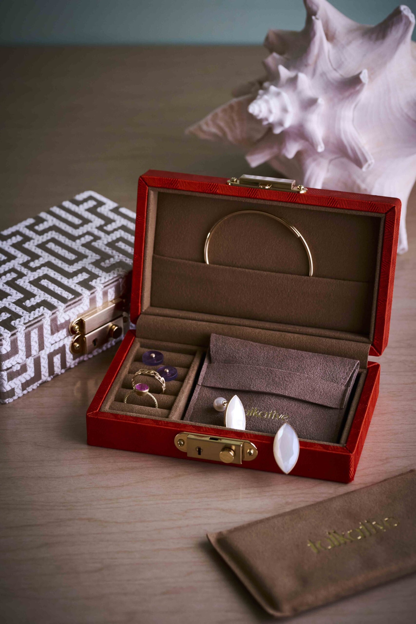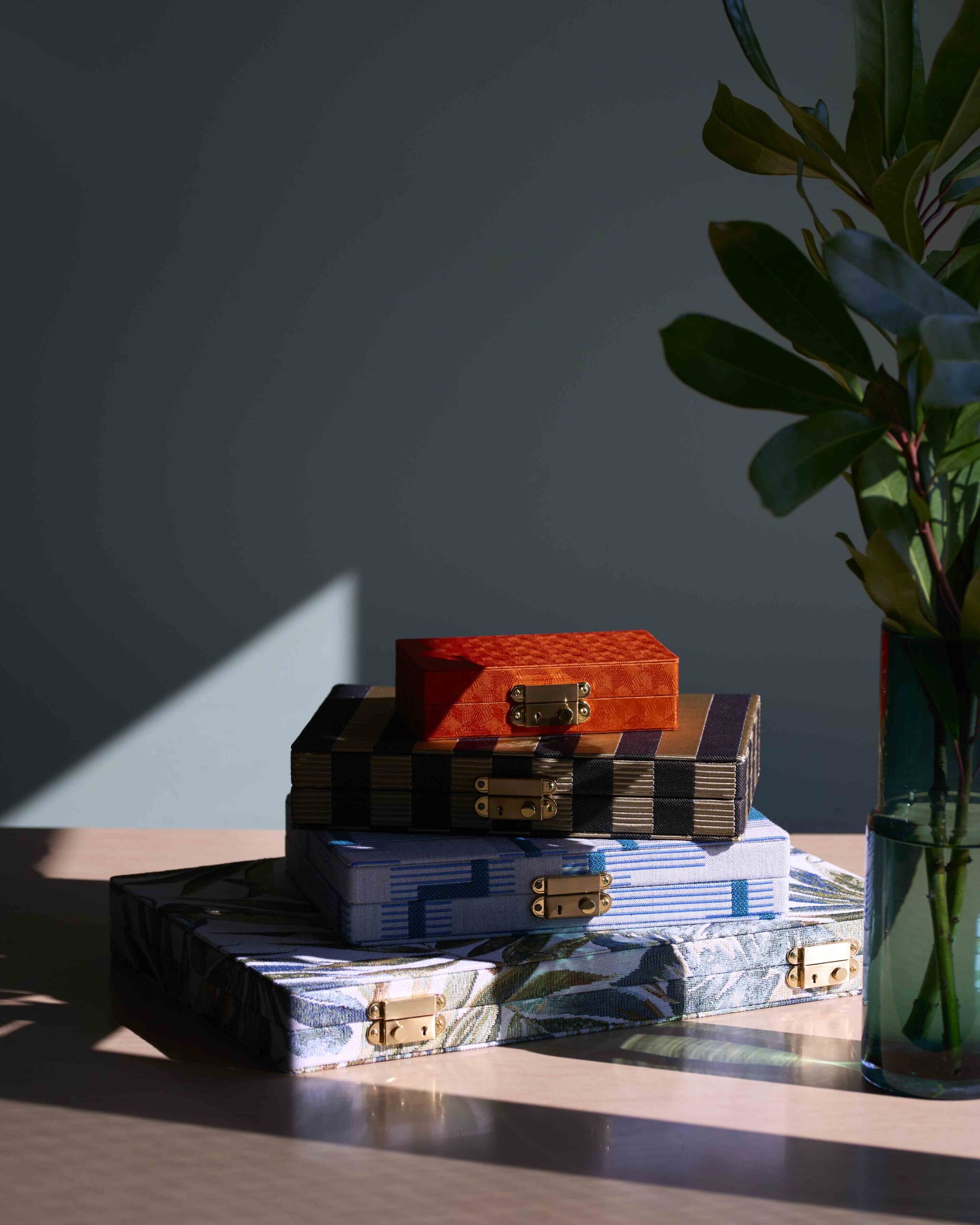 《talkative(トーカティブ)》が毎年展開する人気のジュエリーボックスが、今年も数量限定で登場。使用されているのは、デザイナーが石の買付で訪れた各国で収集してきたアーカイブのファブリックで、ソファやカーテンにも用いられる上質なジャガード生地を採用し、それぞれ異なる柄や厚み、質感を活かして、国内の職人が一点一点丁寧に仕立てています。